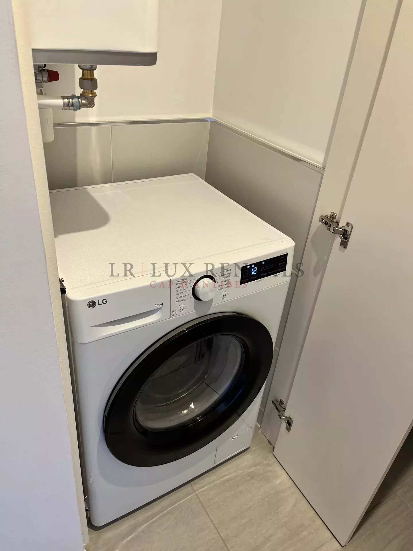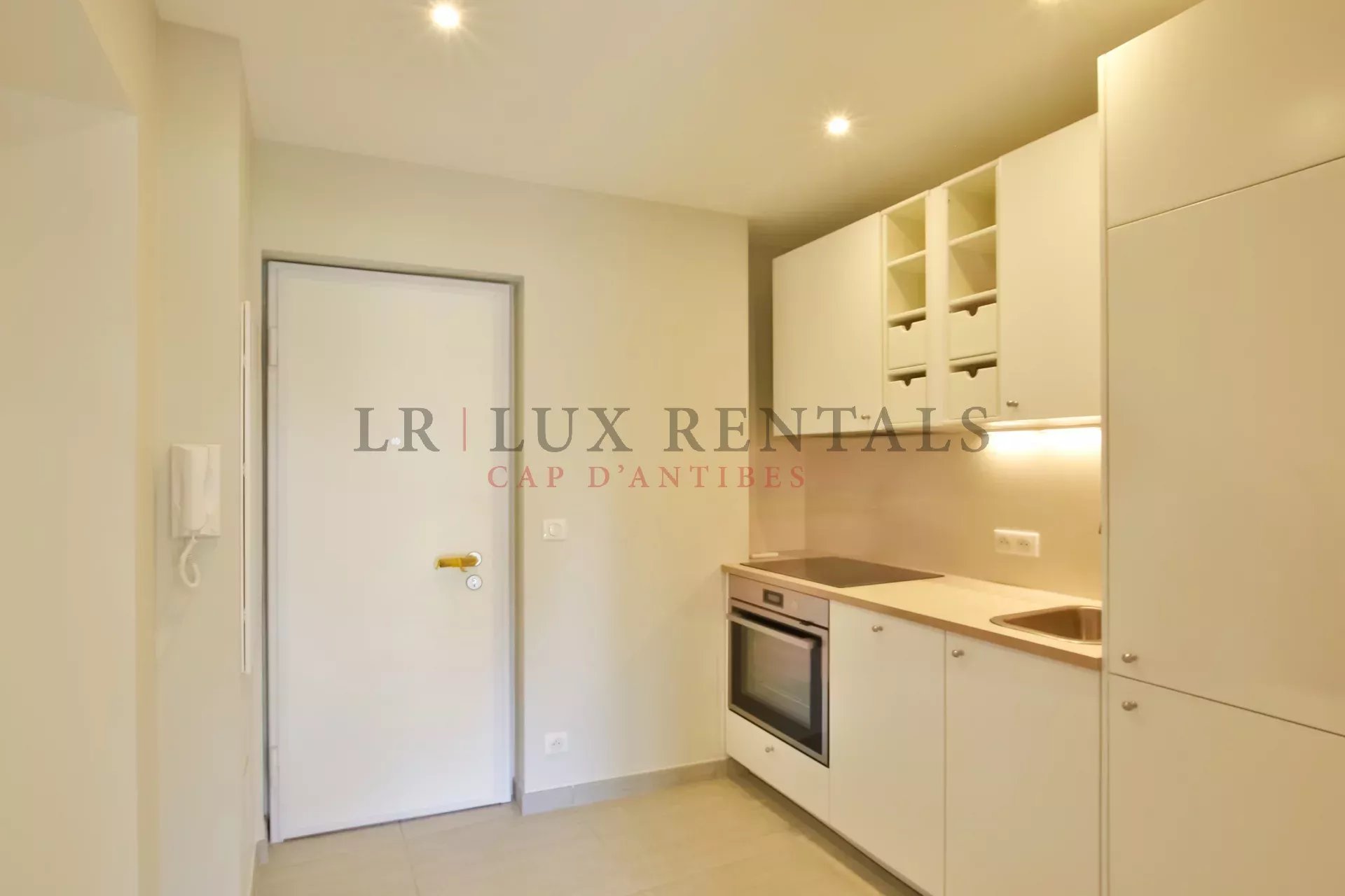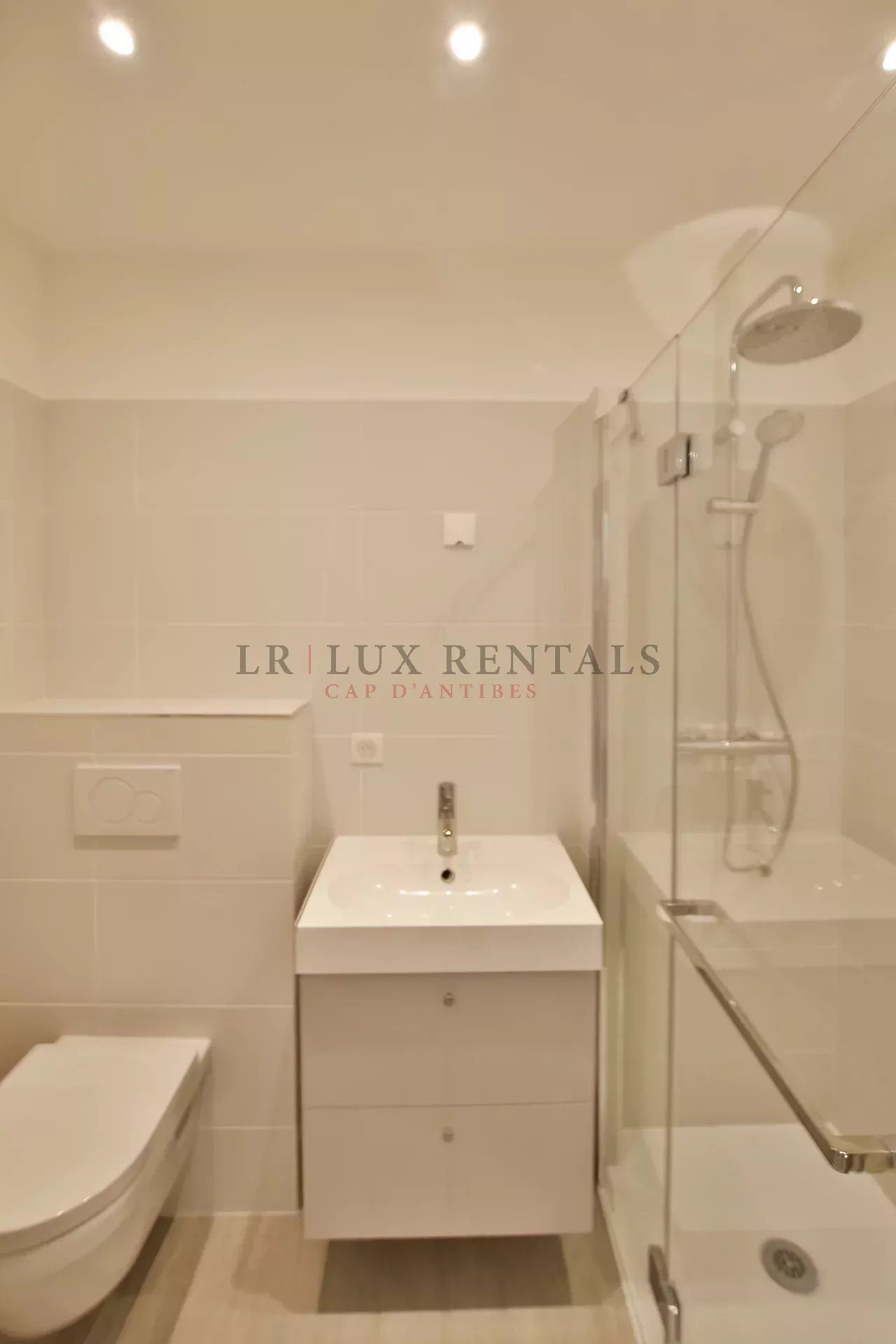 There's also a modern bathroom with shower and washing machine. Located in a quiet, leafy neighborhood, this apartment promises a peaceful living environment just a stone's throw from the center of Antibes.