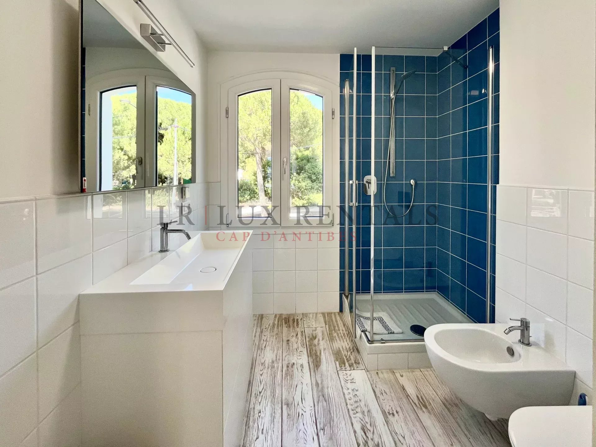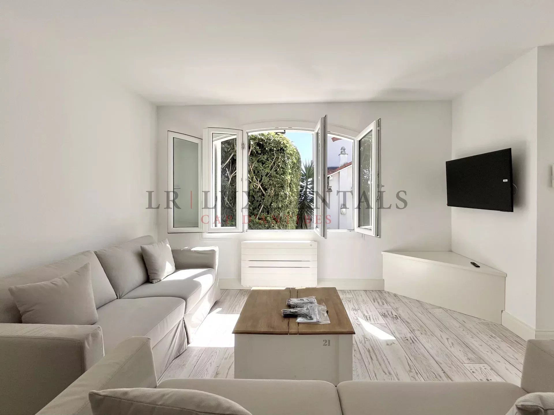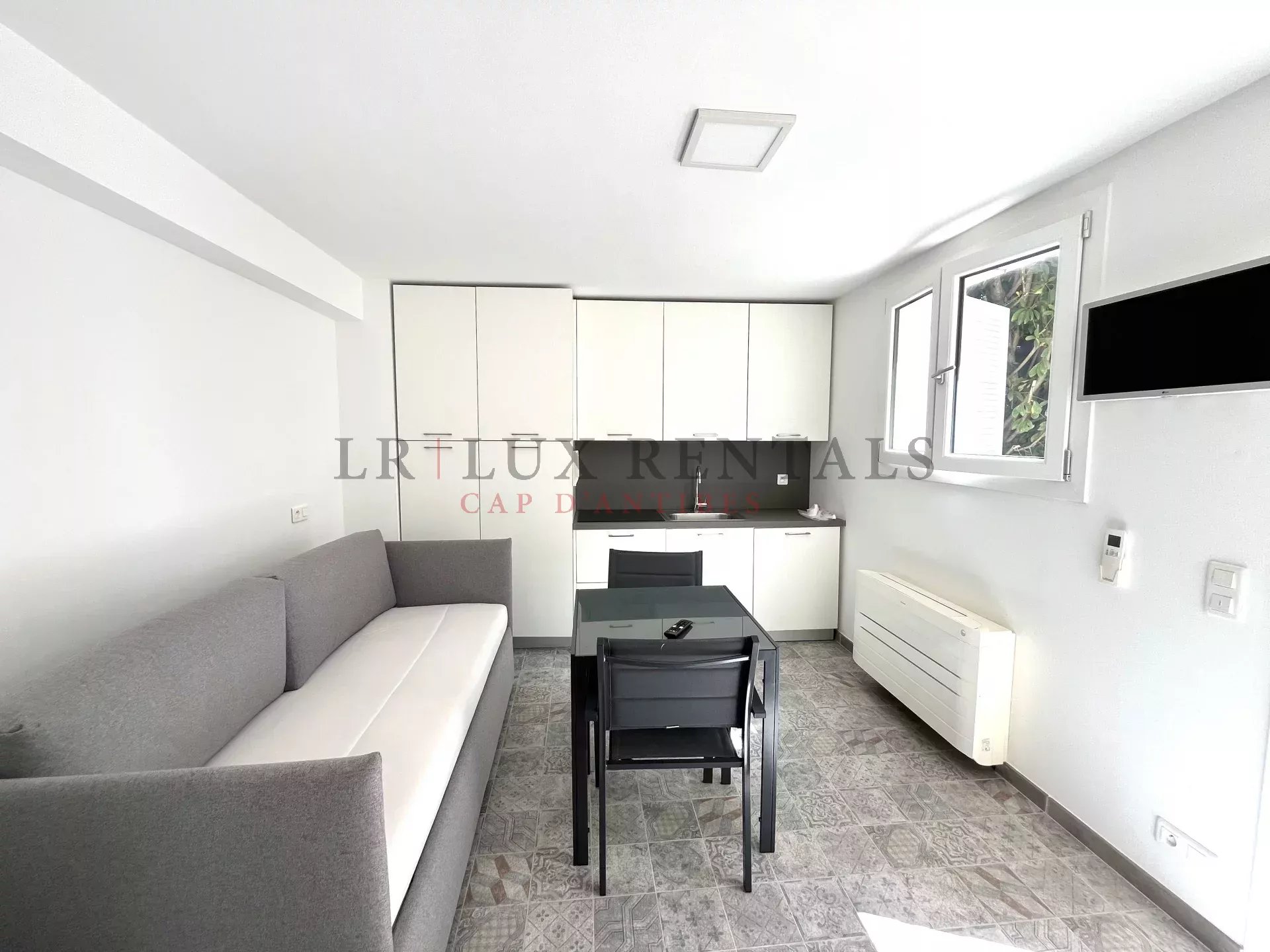 Idéalement située à l’ouest du Cap d’Antibes, à deux pas des plages et des commerces,